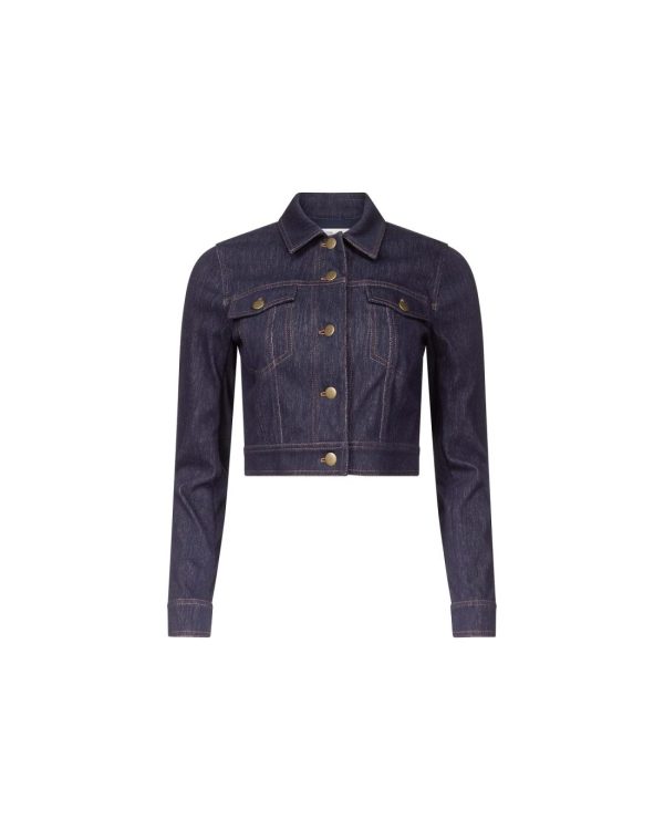 The Kiara Jacket, crafted from versatile knit denim, is your new go-to piece with its perfectly flirty cropped fit.