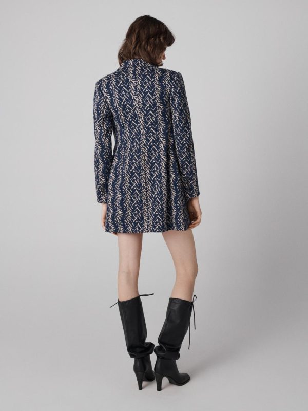 Diane likes to say our suiting is soft enough to sleep in. The Virginia knit jacquard jacket has a soft, textured feel and can be worn open or closed as a mini dress.