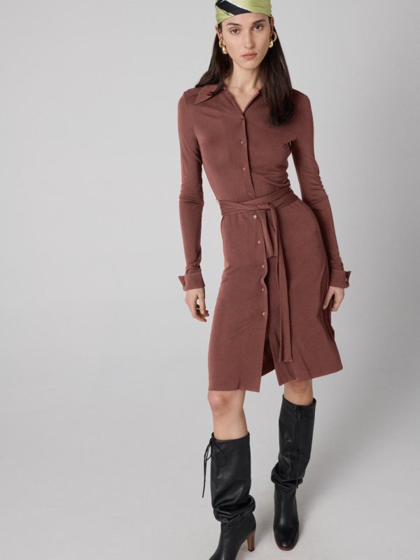 Women Diane Von Furstenberg Knee-Length Dresses | Diane Shirt Dress Chocolate