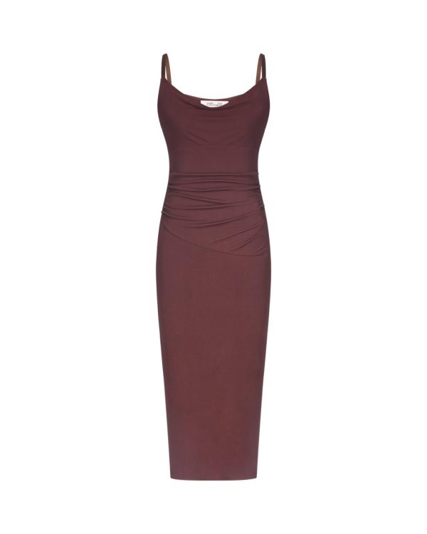 Made from matte jersey, the Claudia slip dress is a sexy chocolate brown dress with a smooth finish and a chic look.