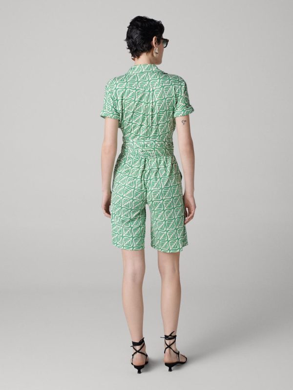 Women Diane Von Furstenberg Separates | Cheryl Silk Jersey Jumpsuit Tiny Desert Palm Indian Green