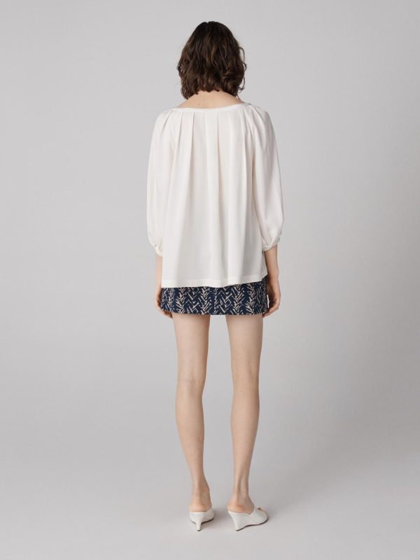 - Billowy three-quarter sleeves