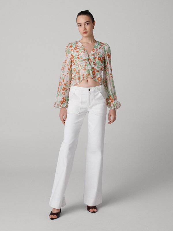 Women Diane Von Furstenberg Shirts & Tops | Mary Silk Chiffon Top Tiny Marlene Batik Ivory