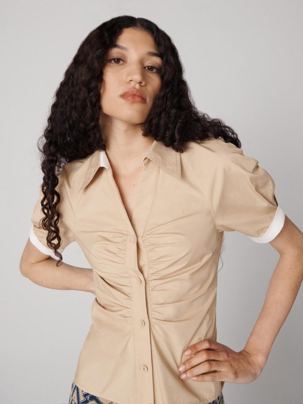 An evolution of one of our best-selling silhouettes, in a structured, stretchy cotton poplin.