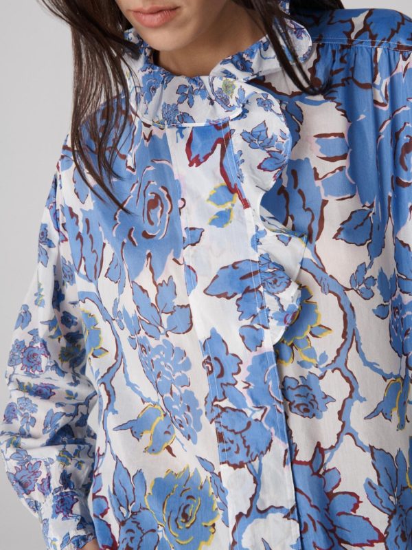 In a soft silk-cotton blend, the Sophia blouse has a feminine feel and a delicate look.