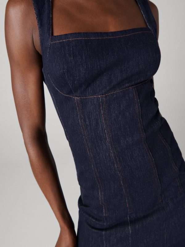 The Jude Dress features a lightweight stretch knit denim construction that delivers both comfort and style, making it the perfect statement piece for your evening wardrobe.