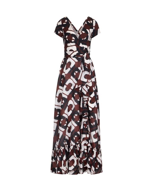 Experience effortless sophistication in our soft silk-cotton blend featuring the stunning new Cane Link print in rich Brown. The Vivianna wrap dress offers a beautifully fluid drape and luxurious handfeel that moves gracefully with you.